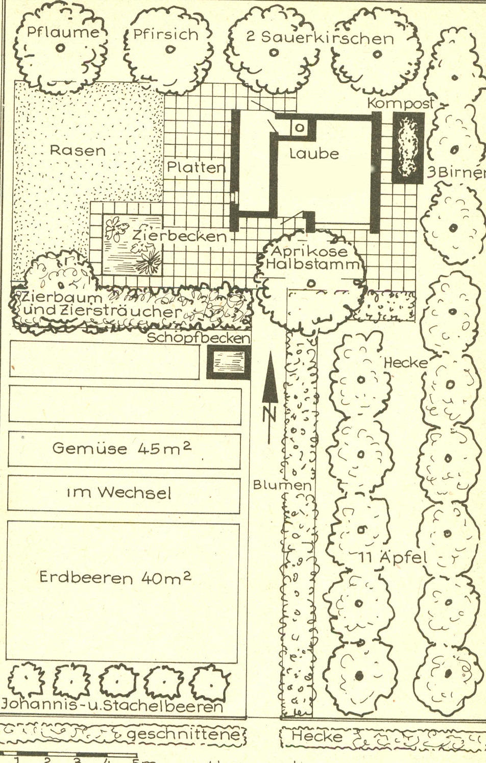 Obstbäume, Hecken Gemüsefläche usw.